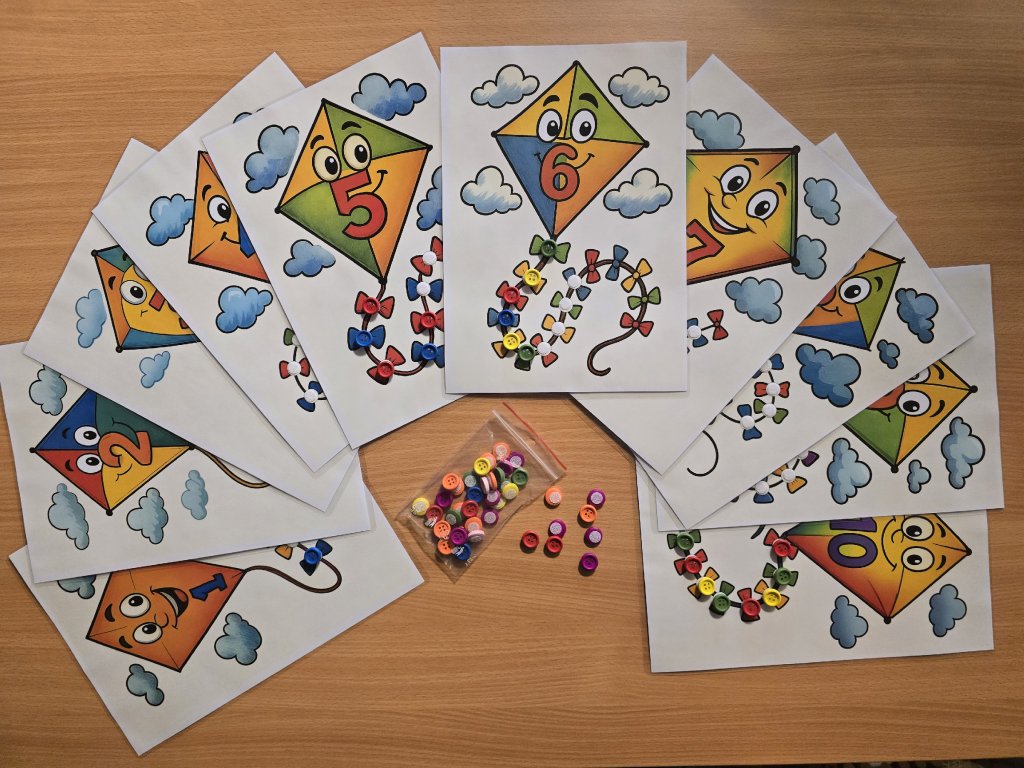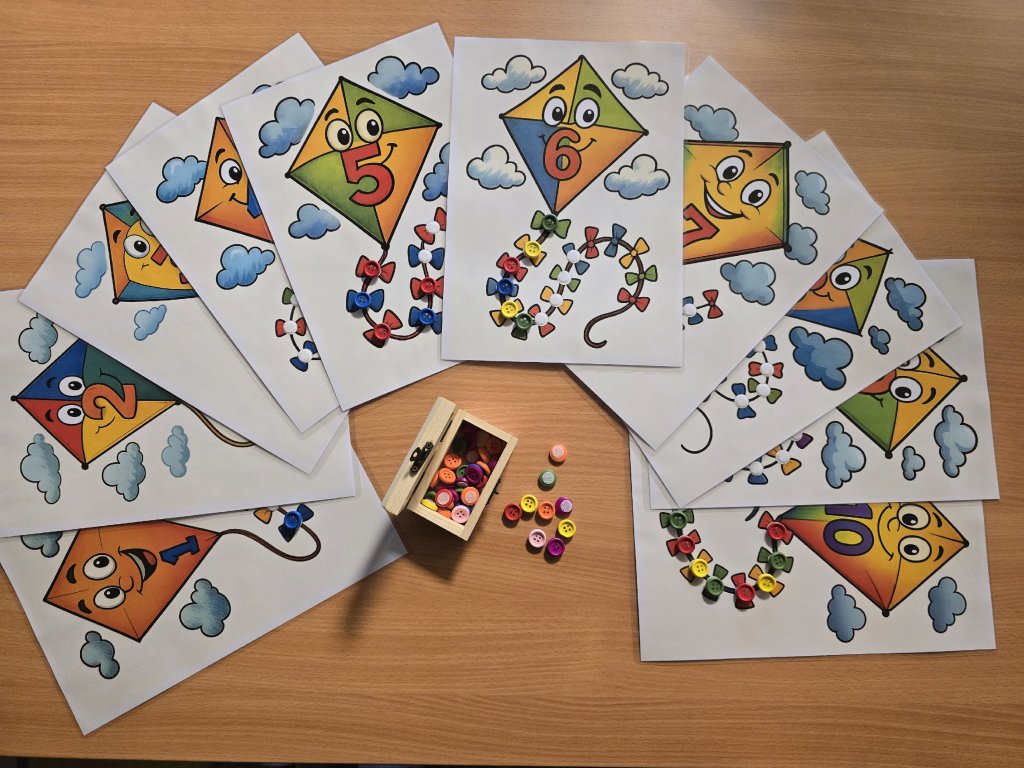 Didaktická pomůcka je zaměřena na rozvoj předmatematických dovedností prostřednictvím názorné a hravé manipulace. Děti pracují s obrázky podzimních dráčků, na jejichž tváři je zobrazeno číslo. Podle tohoto čísla přiřazují odpovídající počet knoflíků na ocásky s mašličkami, čímž si upevňují vztah mezi číslem a množstvím.